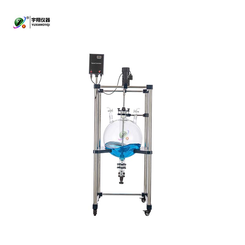 玻璃分液器 FY-20L:框架式主体、玻璃+四氟放料阀门、陶瓷轴承机械密封,月牙式搅拌桨。